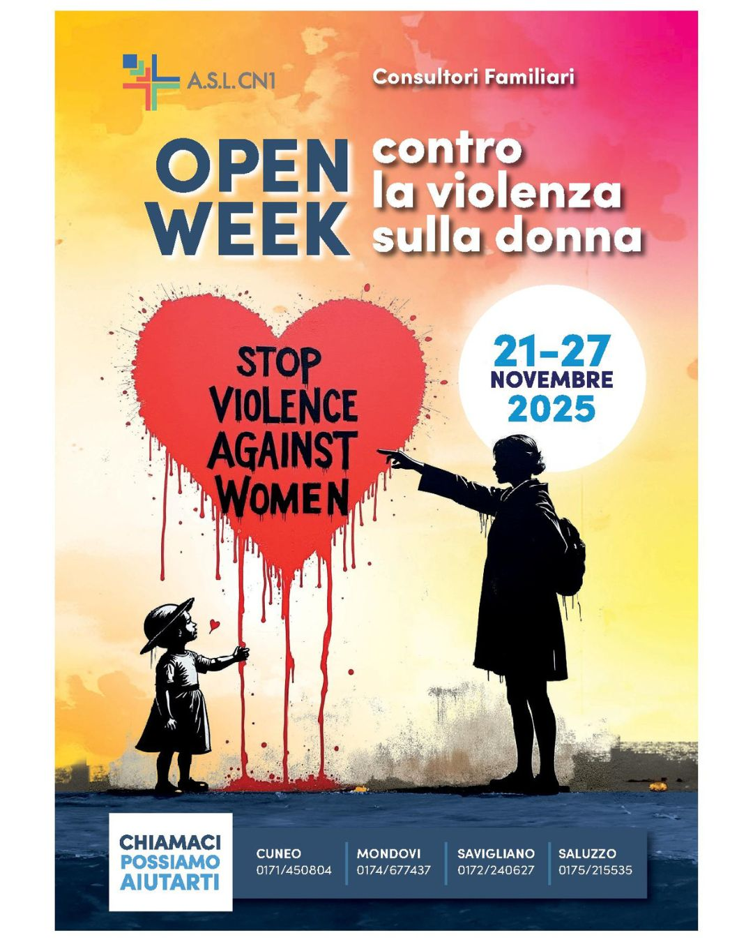 In occasione della Giornata Internazionale per l’eliminazione della violenza contro le donne, che si celebra il 25 novembre, i Consultori Familiari dell’ASL CN1 organizzano una Open Week di sensibilizzazione dedicata alla prevenzione e al contrasto della violenza di genere.